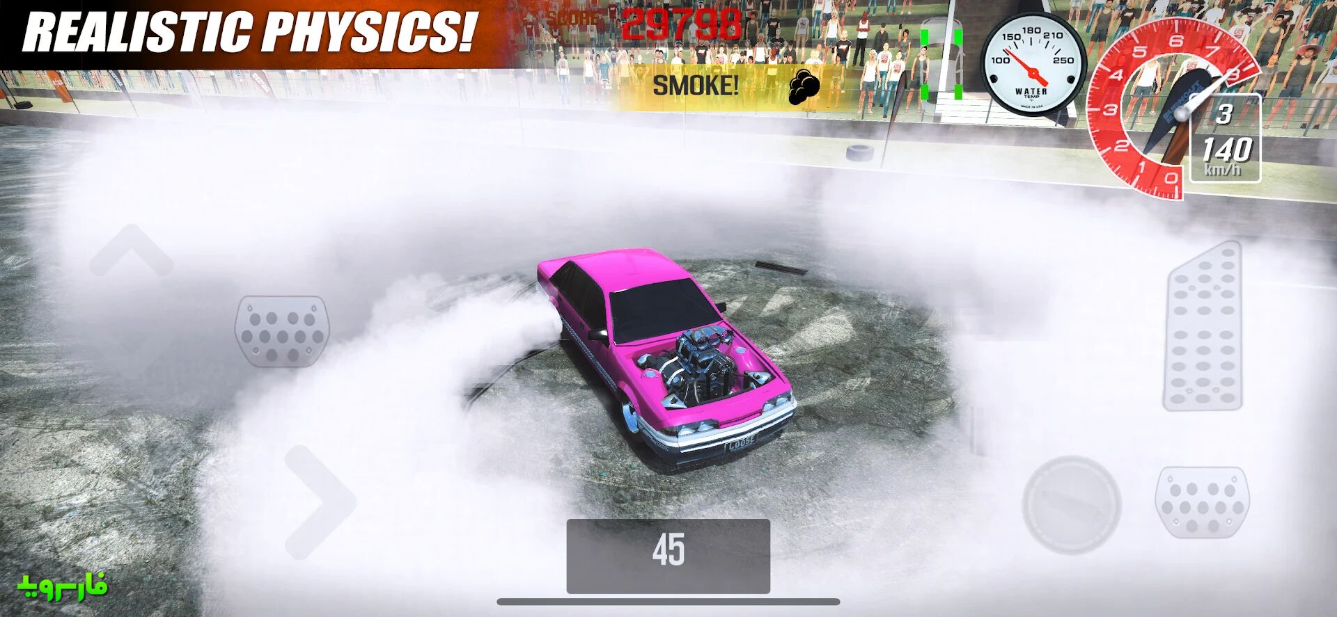 بازی Burnout Masters یک عنوان تکامل یافته است که در آن بیشتر از 20 ماشین اسپرت از مدل های واقعی وجود دارد. در کنار این ماشین ها، بازیکنان می توانند نزدیک به 60 ماشین شخصی سازی شده و سفارشی شده هم بسازند! Road Burn Games برای قسمت شخصی سازی ها وقت و انرژی زیادی گذاشته و کاملاً مشخص بوده که این قسمت قرار است حتی بیشتر از بخش اصلی بازی برای بسیاری از مخاطبین جذابیت داشته باشد و به یکی از عناصر اصلی برای موفقیت این بازی تبدیل شود. اما چیزی که شاید بتوان آن را نقطه عطف بازی Burnout Masters دانست، داشتن بخش جذاب چندنفره (Multiplayer) است. در این قسمت از بازی شما می توانید به صورت آنلاین همراه با دیگر بازیکنان در بازی هایی تا 8 نفر شرکت کنید و در کنار آن ها حسابی سرگرم شوید. سبک بازی از نوع رقابت های Torque است و در این رقابت ها خبری از مسابقات سرعت و Drag و … نیست. ملاک کسب امتیاز و برتری در این رقابت ها انجام حرکات نمایشی چرخشی و اصطکاک لاستیک ها به منظور ایجاد دودهای غلیظ است. این رقابت ها به شکل خوبی در بازی Burnout Masters شبیه سازی شده است و مدل سازی های پرجزئیات و سه بعدی به خوبی حس و حال یک رقابت هیجان انگیز در این سبک را به شما انتقال می دهد. اگر شما هم از علاقه مندان به مسابقات Torque و Burnout هستید، این عنوان جذاب و سرگرم کننده را از دست ندهید و همین حالا از بخش دانلودباکس اپلیکیشن برتر آخرین نسخه آن را به شکل رایگان دریافت کنید.