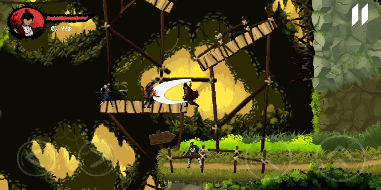 Samurai Story داستان سامورایی عنوان یک بازی در ژانر اکشن است که توسط استودیو بازی سازی KATbIK STUDIOS برای دستگاه های اندروید منتشر شده است. استودیو بازی سازی KATbIK STUDIOS پیش از این هم بازی های خوبی را برای گیمر ها در مارکت اندروید منتشر کرده است و کارنامه موفقی دارد. Samurai Story هم یکی دیگر از بازی های خوب این استودیو بازی سازی است که توانسته با ارائه یک گیم پلی جذاب و سرگرم کننده محتوای یونیکی را برای گیمر ها به ارمغان بیاورد. سال هاست که مدیوم گیمینگ شاهد حضور بازی های نینجایی و سامورایی زیادی بوده است. از بازی هایی مثل Cat and Ghostly Road گرفته تا بازی هایی مثل Legacy of Ninja – Warrior Revenge Fighting Game، تم ژاپنی همیشه در میان گیمر ها از محبوبیت بالایی برخوردار بوده و توسعه دهندگان بازی های موبایلی هم به خوبی به این موضوع واقف هستند. در حالی که بازی های موبایلی به بازی های غول آسای کنسولی مثل Ghost of Tsushima نمی رسند، در عین حال می توانیم برای بازی های موبایلی هم انتظار یک کمپین هیجان انگیز را داشته باشیم که برای مدتی هر چند کوتاه لذت بیرون ریختن دل و روده دشمنان و از وسط دو نصف کردن آنها را به ما هدیه دهد. Samurai Story دقیقاً قصد دارد همین کار را انجام دهد. ایده این بازی بسیار ساده و سر راست است. خط داستانی خاصی در بازی وجود ندارد و پیدا کردن شخصیتی به نام “آقای هیمورا” و پی بردن به “راز بزرگ”، داستانی است که بارها و بارها در بازی ها و فیلم های سینمایی مختلف دیده ایم. اما گیم پلی اصلی بازی و مرحله ها، نقطه قوت این بازی اندروید هستند. در حالی که Samurai Story خودش را در ژانر اکشن معرفی می کند، در عین حال با ورود به بازی به طور واضح متوجه می شوید که این بازی در حقیقت یک پلتفرمر دو بعدی است که از المان های مترودونیا استفاده می کند. ساختار بازی در شاکله اصلی خودش بر اساس مرحله ها است. ۴ حالت “history mode”, “free mode”, “fruit mode” و “platformer” این مرحله ها را تشکیل می دهند.