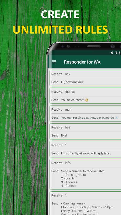 برخی از امکانات و قابلیت های برنامه AutoResponder for WhatsApp اندروید :