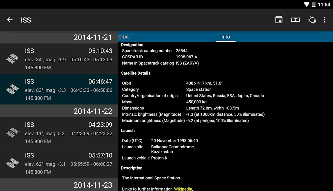 - پیش بینی های دقیق از عبور ایستگاه فضایی بین المللی (ISS) و ماهواره های قابل مشاهده
