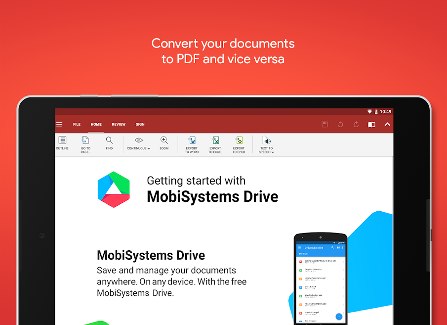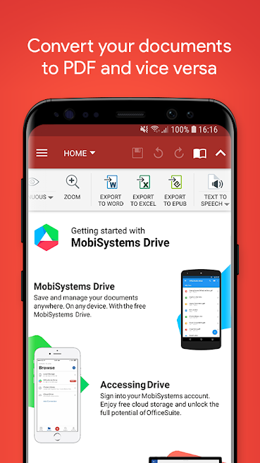 - • Use one integrated MobiSystems account to sign in automatically to OfficeSuite, File Commander and MobiDrive.