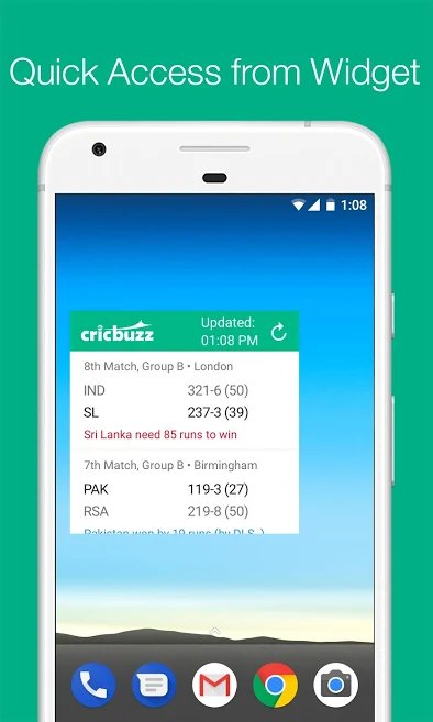 ورزش های زیادی هست که در یک کشور محبوبیت بسیار بالایی دارد و در یک کشور دیگر حتی اسم آن ها را هم خیلی از مردم نشنیده اند. کریکت یکی از این ورزش هاست. این ورزش در دو کشور هند و پاکستان سابقه بسیار طولانی دارد و مهم ترین بازی در این کشور هاست. البته پیشینه کریکت و آغاز این ورزش به هیچ یک از این دو کشور باز نمی گردد. کریکت یک بازی کاملا انگلیسی و بریتانیایی است که حداقل ۵۰۰ سال است که در این کشور بازی می شود. با گسترش امپراطوری بریتانیا و افزایش مستعمرات این کشور، بازی کریکت نیز مانند بسیاری دیگر از عوامل فرهنگی انگلستان، وارد کشور های مستعمره شد و توانست طرفداران بسیاری جذب کند. به طوری که امروزه مسابقات کریکت در بیش از 100 کشور جهان برگزار می گردد. کریکت به لحاظ شکل ظاهری، شباهت بسیار زیادی به بیس بال دارد، اما قوانین بازی متفاوتی روی آن ها حاکم است. اگر شما هم به این ورزش علاقه دارید و اخبار و مسابقات آن را دنبال می کنید، اپلیکیشنی که امروز معرفی می کنیم را از دست ندهید. Cricbuzz – Live Cricket Scores & News عنوان یک اپلیکیشن جامع و کامل برای اطلاع از آخرین اخبار و اطلاعات مسابقات کریکت در سراسر جهان، مخصوص سیستم عامل اندروید است که توسط گروه نرم افزاری Cricbuzz.com توسعه و به صورت رایگان در گوگل پلی منتشر شده است. با استفاده از این برنامه می توانید نتایج زنده مسابقات همراه با تحلیل ها و گزارش های تخصصی را به سرعت و آسانی دریافت کنید. اخبار تحلیلی، جدول رده بندی، بازی های آینده و ویدئو های تکمیلی از جمله امکانات منحصر به فرد این برنامه به شمار می روند. البته با نصب این برنامه یک ویجت بسیار زیبا و کاربردی هم در اختیار شما قرار می گیرد تا اطلاعات برنامه را به راحتی در هوم اسکرین خود نیز داشته باشید.