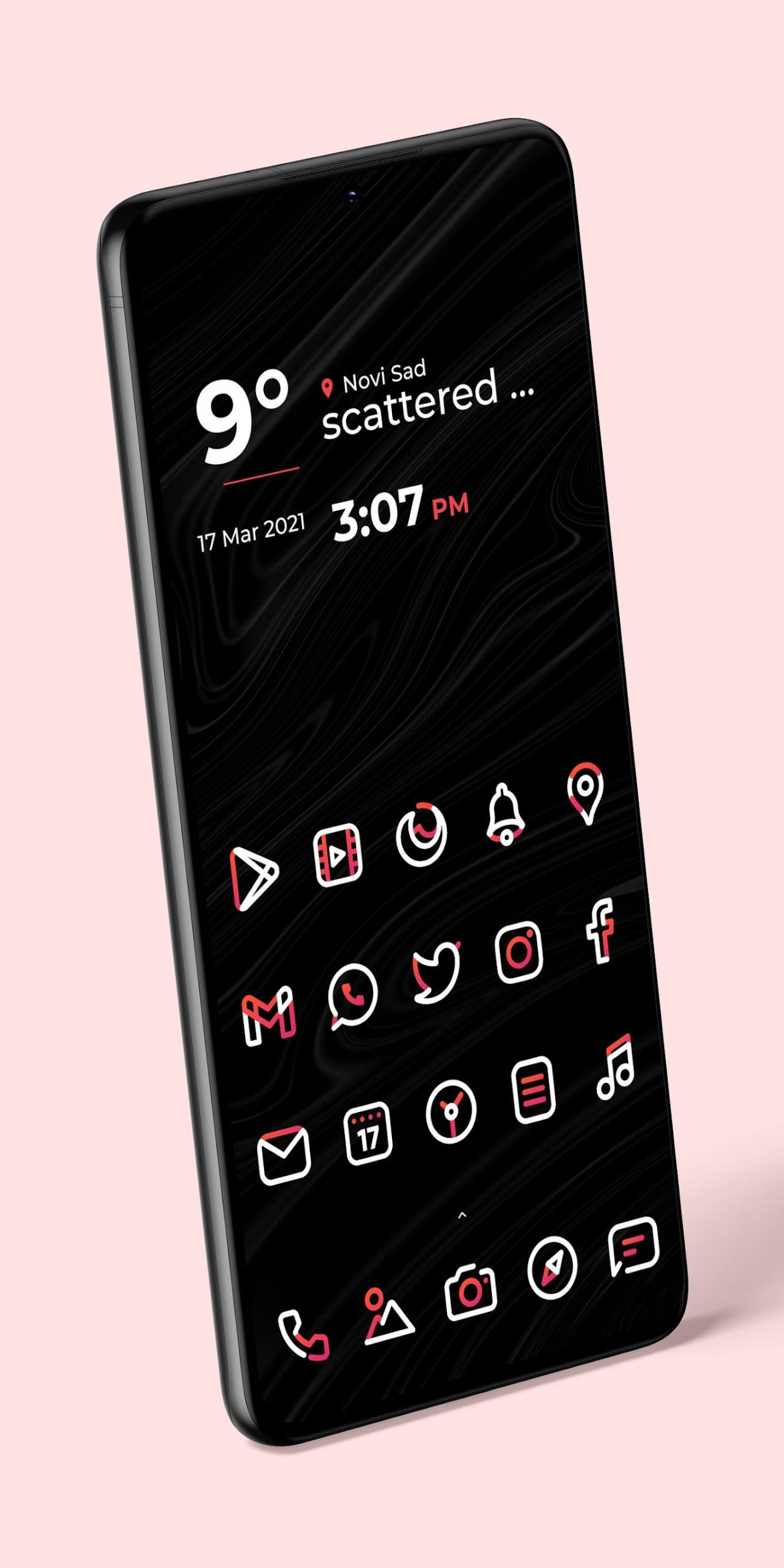 برخی از امکانات و قابلیت های برنامه Aline Red Icon Pack – Linear White & Red Icons اندروید :